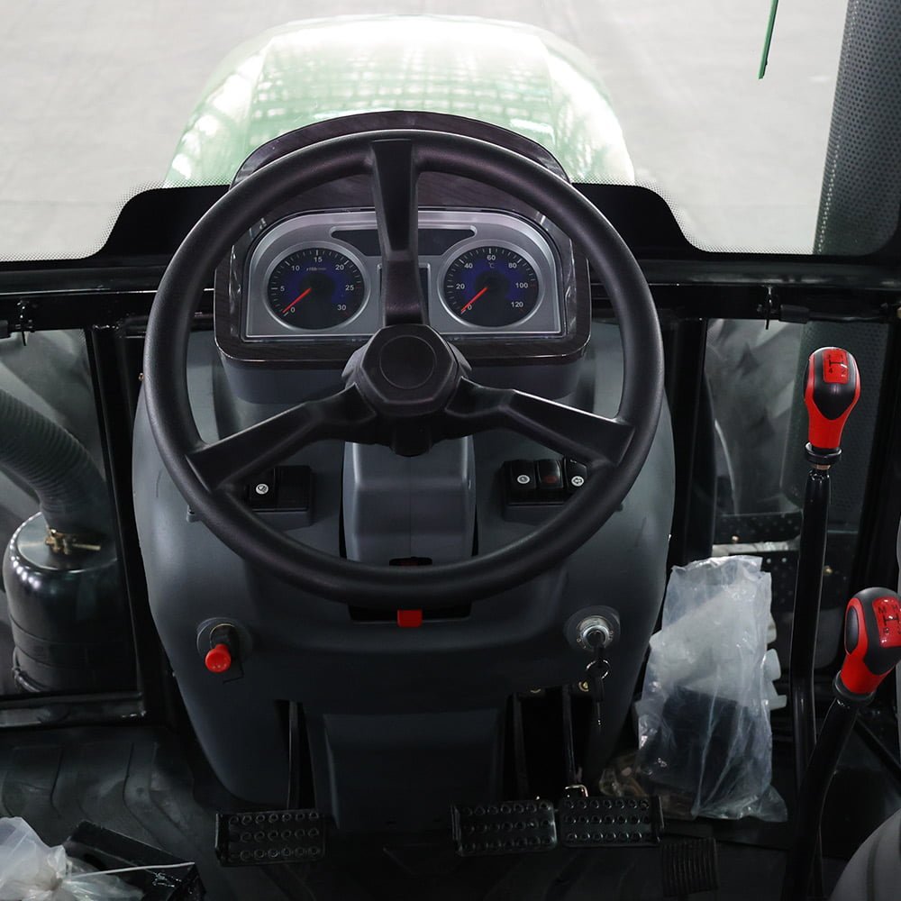 Equipped with an LED digital instrument panel, it clearly displays vehicle status information such as speed and fuel level, providing a car-level driving experience. The hydraulic three-point linkage meets Class 2 standards, paired with a separate heavy-pressure cylinder, achieving a maximum lifting capacity of 3000KG, which can easily tow large tillers, seeders, and other equipment. It comes standard with three sets of hydraulic outputs, compatible with various hydraulic agricultural machinery to meet full-process operational needs including plowing, sowing, and harvesting. The flexible transmission ratio design across multiple series can accurately match different customers’ working scenarios, delivering high efficiency whether in continuous plain farming or complex hilly plots.